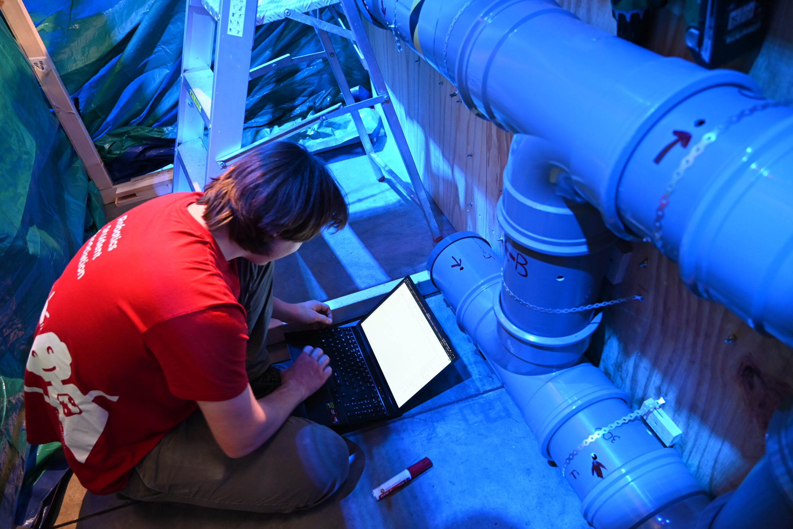 Yet another hackathon took place at SAM XL, this time, the teams had to build a robot to explore tunnels or pipe systems. Various solutions already exist in the industry for inspecting pipes for gas, water and sewage. But there is one thing these robots cannot do: climb vertical T-pieces. Therefore, the test setup with many vertical T-pieces presented a significant challenge for the teams. The pipe system contains inspection points, marked with a red line. The teams had to reach as many of these points as possible with their robot. In addition, they had to keep track of the location of the red markings. In order to do this, they had to keep track of their own coordinate system and figure out how to determine where everything was located in relation to this coordinate system.