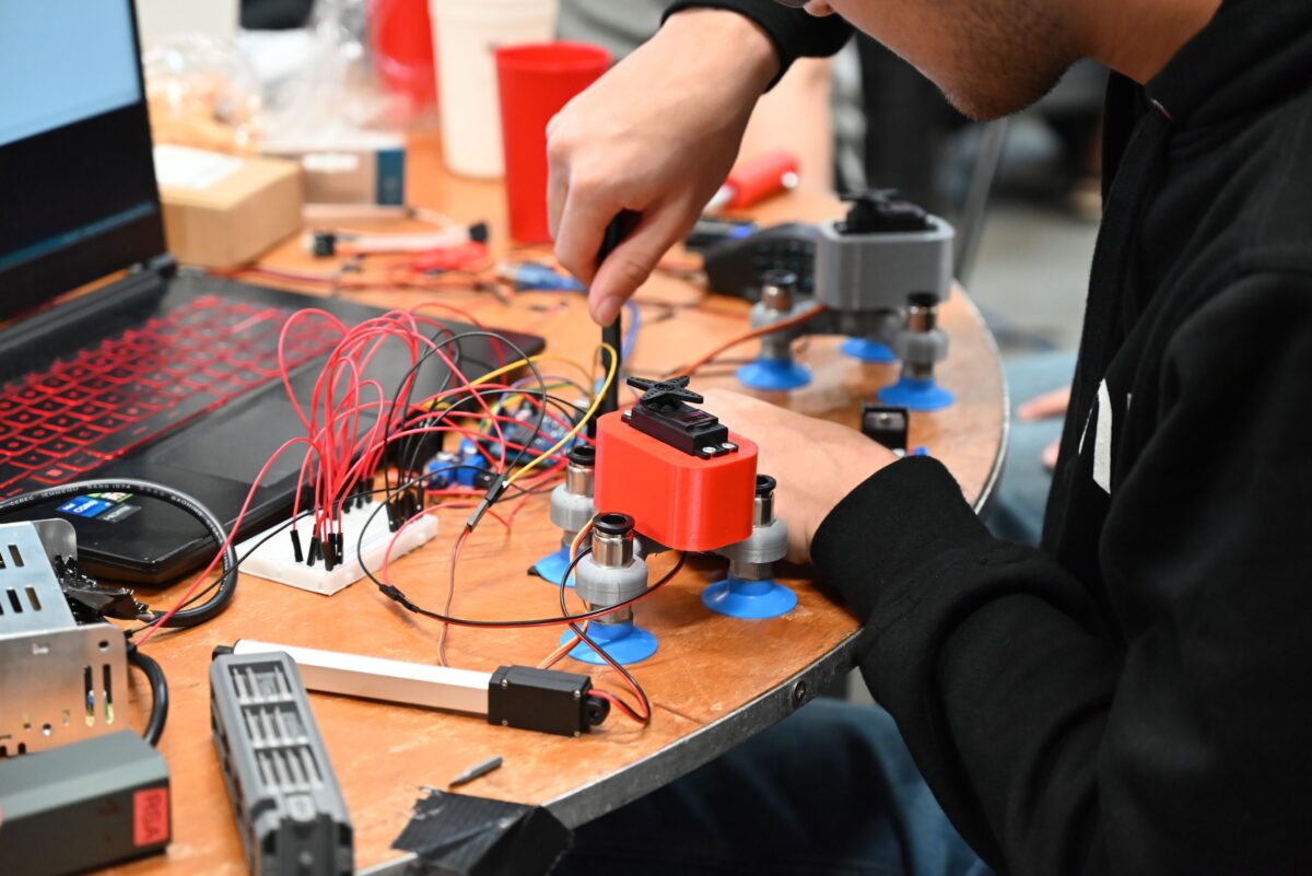 SAM XL (Smart Advanced Manufacturing XL) vormt als expertisecentrum voor het automatiseren van productie een unieke schakel tussen de faculteiten van TU Delft, de maakindustrie en leveranciers. Wij ontwikkelen software en hardware voor verbetering van de intelligentie, connectiviteit en flexibiliteit van industriële robots. Deze robottechnologie voor het uitvoeren van complexe taken aan grote structuren wordt gevalideerd en gedemonstreerd in ons industriële automatiseringslab. Daarnaast bieden we studenten en werknemers van onze industrie- en wetenschapspartners trainingen om hun digitale vaardigheden te vergroten.